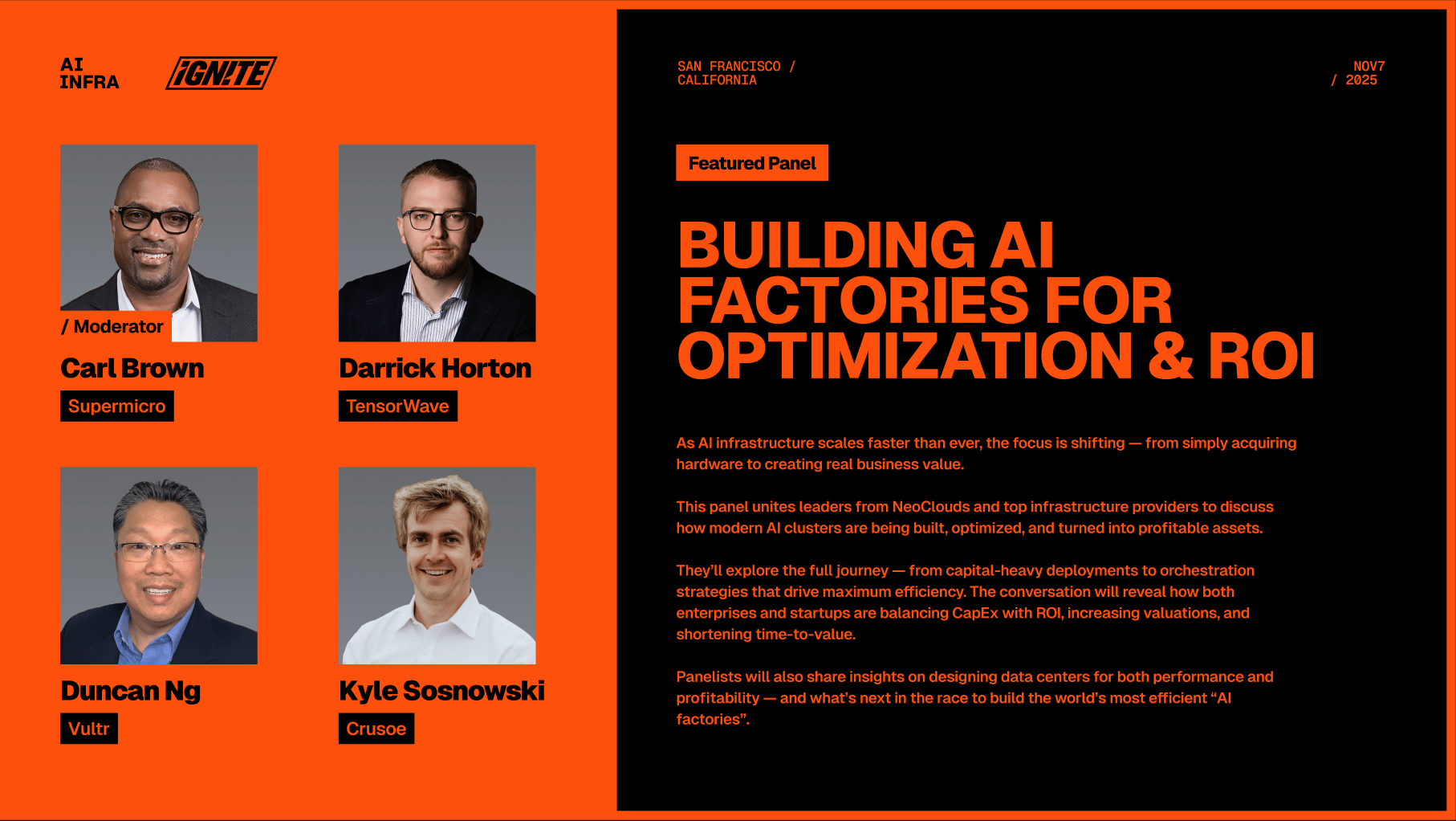 The day’s sessions track the full stack of modern AI infrastructure. Panels like “Building an Open Infrastructure for the Internet of Agents” (Cisco) and “PoCs to Production: Activating Agentic AI at Scale” (Microsoft, Classie AI) cut to the heart of deployment bottlenecks. Technical deep dives such as AMD’s ROCm breakout and “Building AI Factories for Optimization & ROI” (Supermicro, Crusoe, Vultr) focus on compute orchestration, efficiency, and the economics of scale. Thought leaders including Vinesh Sukumar of Qualcomm and Martin Harrysson of McKinsey expand the horizon, connecting edge innovation, energy constraints, and enterprise readiness.